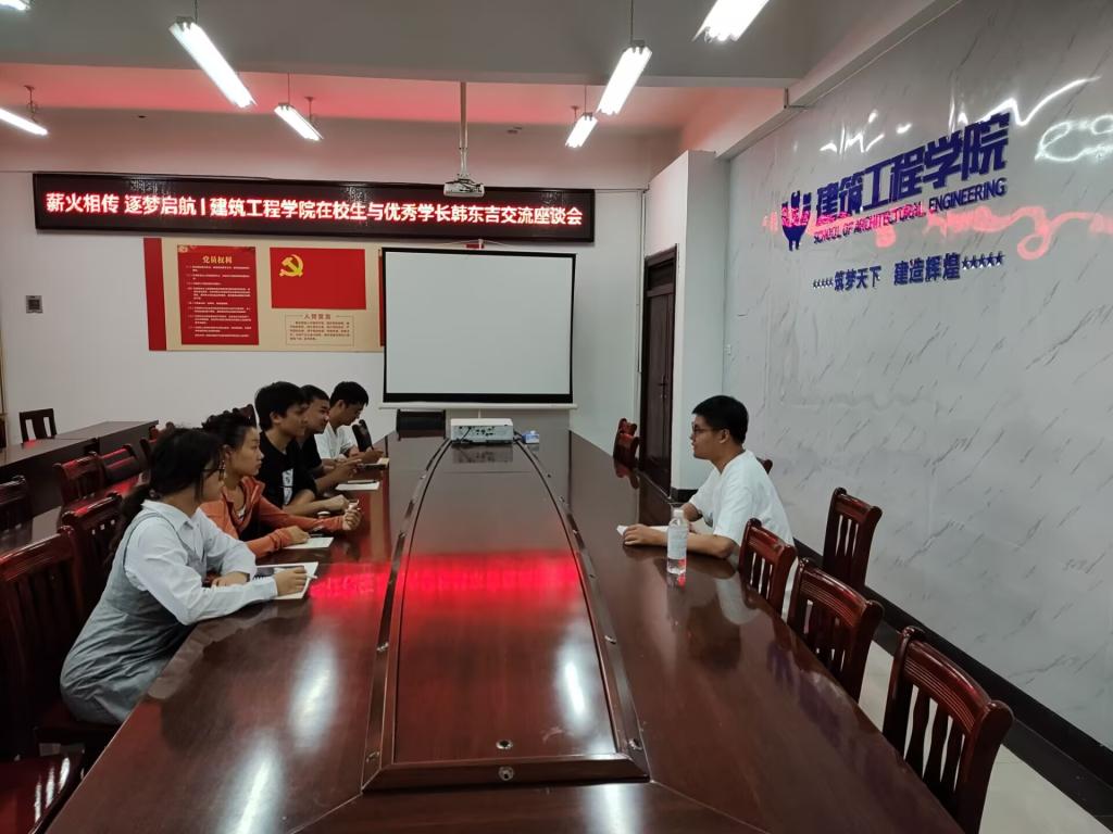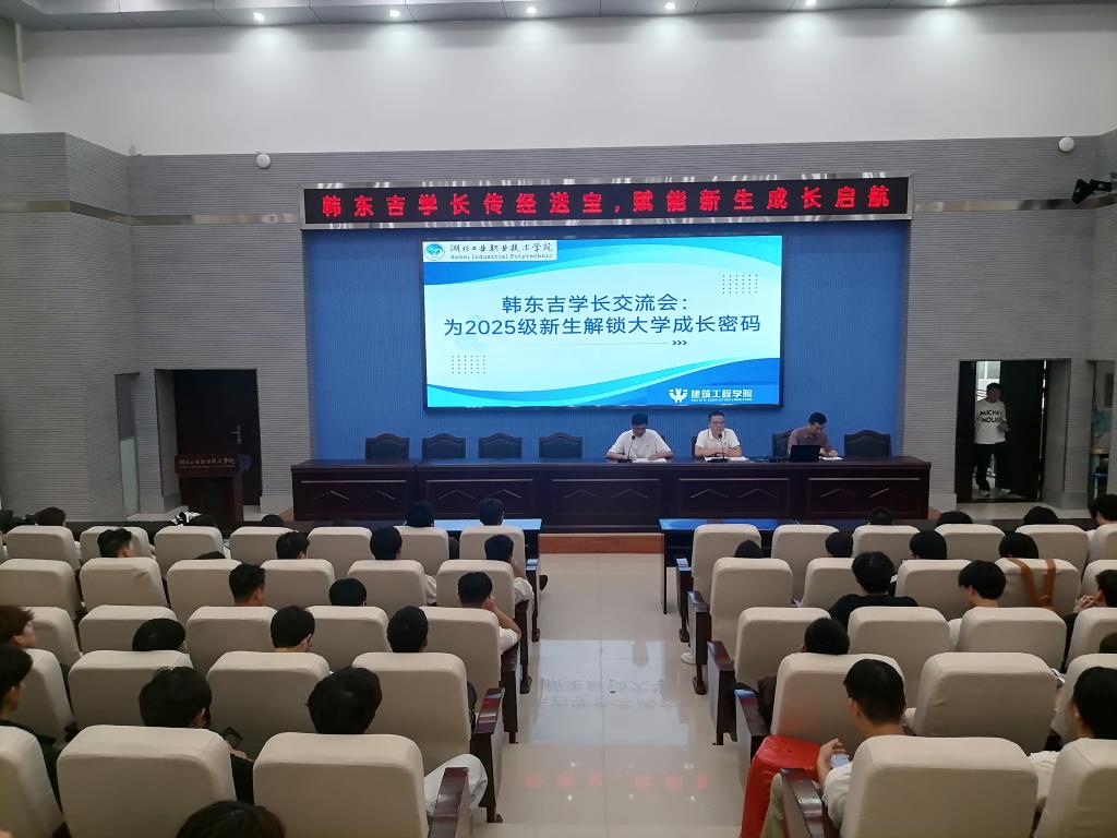 (通讯员:王厚兵)9月8日下午,科技楼学术报告厅内座无虚席,一场以“榜样引路、共话成长”为主题的优秀校友交流活动在此顺利举行。本次活动由学院党总支书记王厚兵主持,2015级建筑工程管理专业校友韩东吉受邀返校,与2025级新生面对面交流,分享求学与职业发展经验。